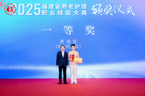 近日,2025年福建省养老护理职业技能大赛在福州圆满落幕。经过理论知识竞赛、实操单项赛与组合赛的激烈角逐,泉州代表队选手黄禄资凭借扎实的专业功底和精湛的操作技能脱颖而出,荣获大赛一等奖,并在颁奖仪式上分享参赛感悟。同时,泉州市民政局因在市级选拔组织、选手培养输送及大赛保障等方面表现突出,获评“优秀组织单位”。