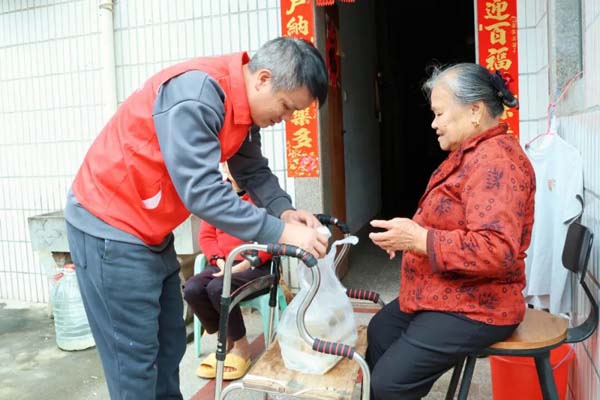 在做好集中堂食、普惠就餐的基础上,坛顶村还聚焦特殊群体,让助餐服务更有温度。每天中午,当堂食区域一片热闹时,一条暖心的爱心送餐线也同步启动。由党员、村干部和志愿者组成的送餐队,会准时将热气腾腾的饭菜送到高龄、失能、残疾等行动不便的村民家中。肢体残疾的杨奶奶接过送餐员送来的饭菜时激动地说:我和老伴都腿脚不便,村里也没忘了我们,一天不落地送热饭菜,真真切切感受到政府对我们老年人的关心,就盼着食堂能一直办下去。贴心的上门服务,确保了特殊群体在吃饭问题上一个都不掉队。